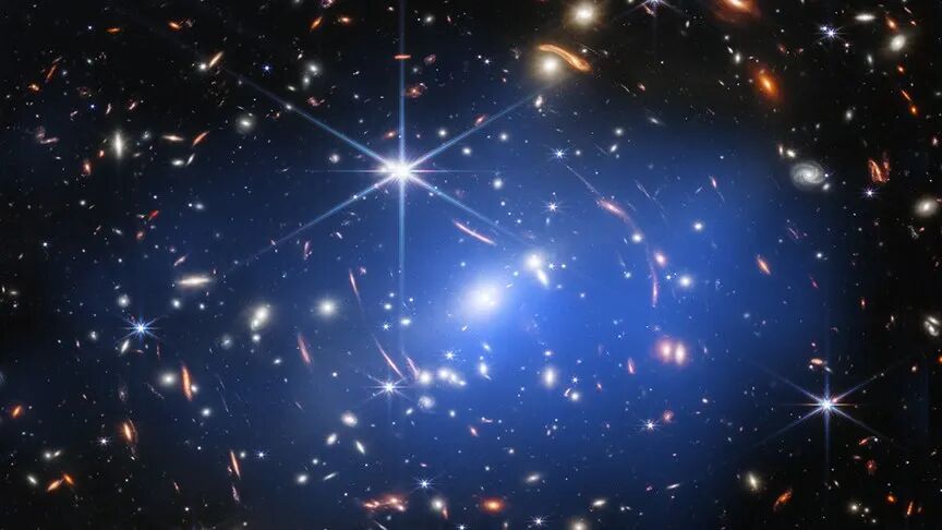 这也许是JWST第一批照片中最闪耀的一个,SMACS J0723星系团距离地球42亿光年。钱德拉对这些观测的补充揭示了被加热到数千万度的气体,像SMACS J0723这样的星团拥有数千个星系以及巨大的过热气体储层。科学家估计,JWST和钱德拉合作发现的气体总质量约为太阳质量的100万亿倍。