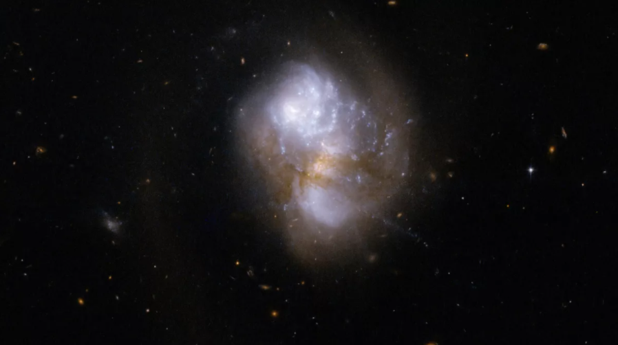 IC 1623位于鲸鱼座,距离地球约2.7亿光年,天文学家认为,合并还可能产生一个超大质量黑洞,然而,这是韦布也无法看到的。