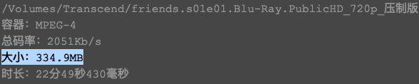 以第1季第1集为例,原视频蓝光720p的,视频文件334M,总码率为2051kb/s。