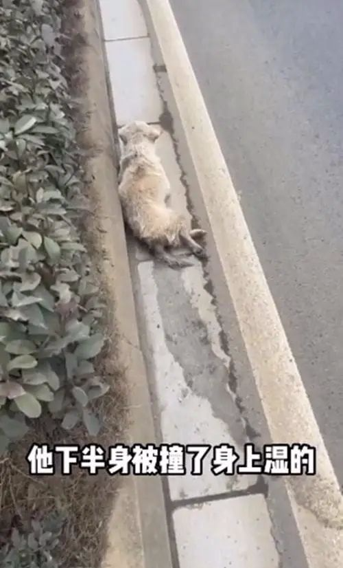 据附近的人说,它躺在这好几天了,似乎是被汽车给撞了,后腿好像已经断了。