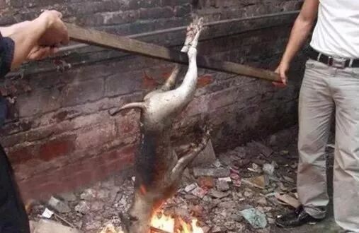 一些胆子较大的狗贩,它们会自己制作一个网套用来套狗狗。在工地上,工人在忙完手头的工作以后,就弄了一只狗狗,放在木炭上开始烤,烤焦的狗皮上面,不但看不到任何狗毛,反而闻上去有股香香的味道。
