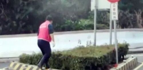 走到哪里都被人嫌弃,这时候一名环卫工人看到了这一幕,将狗狗驱赶到进了一个绿化带中,当狗狗在绿化带中进行生产,狗狗躲过了一劫!