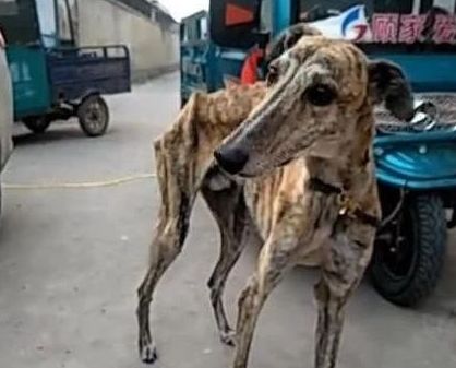 这只狗是好心人从狗贩子手里救下的,因为本可以是大型犬的狗狗现在却被饿的皮包骨头,让人看到就一阵冷颤。走路都微微颤抖,却还要被黑心狗贩当做繁殖工具。