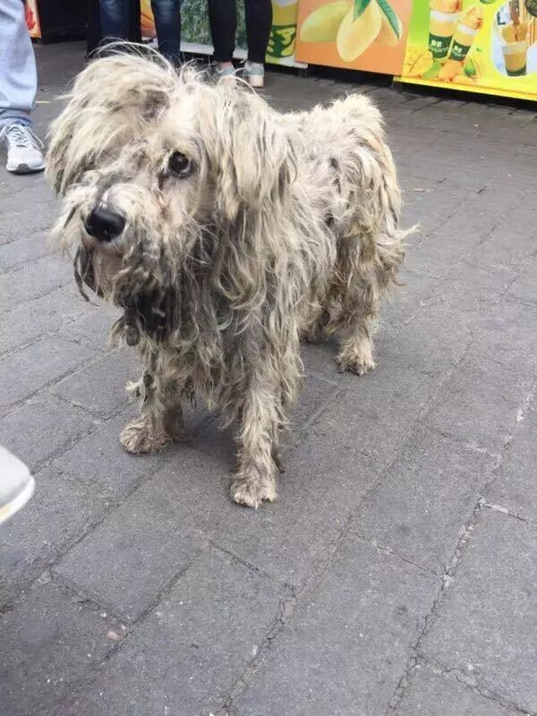 这天我下班路过菜市场的时候,远远的看到了一群刚下课的学生围城了一个圈,不知道在干什么,但是每个人看着都很开心,不时地发出一阵笑声,于是窝边走过去,看到在他们中间有一只浑身毛已经黏在了一起,眼睛都被长毛遮住看不到前方的流浪狗,正在被他们一人一脚的踢来踢去,这只狗也不敢有任何反应,只是趴下再站起来,在一个胖男孩子狠狠地踹了狗一脚以后,这只狗再也没有站起来。