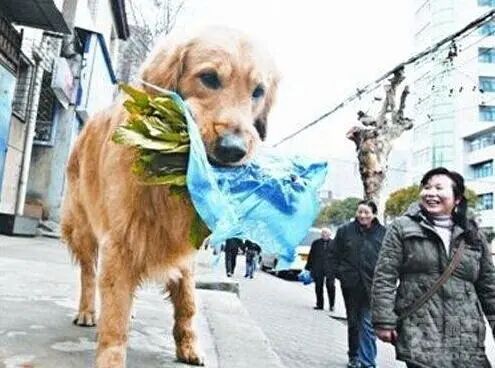 ▼保姆狗狗。你见过会买菜会拖地,堪称“家庭保姆”的狗狗吗?在长沙78岁的黄爹爹家里就有这么一只狗。每天一大早主人还没起床它就叼着菜篮子跑去了菜市场,而且不论菜篮子里装的是白菜还是骨头,狗狗“万利”都是任劳任怨,绝不偷吃菜篮子里的食物。
