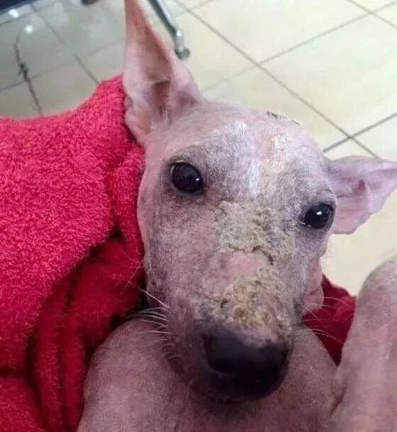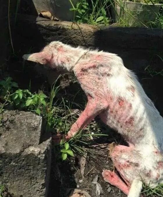 ▼它患上了严重的皮肤病,身上满是伤口。通常这样的狗狗都会让人下意识闪避。