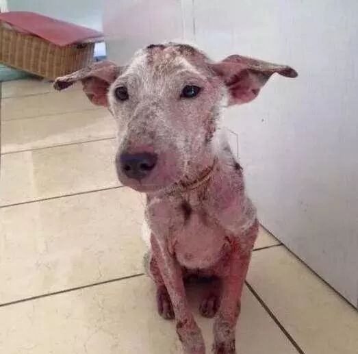 ▼它原本是一只流浪狗,被皮肤病缠身,每天四处流浪饿肚子。