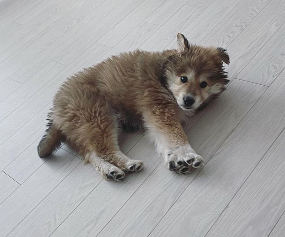 既然相遇,也是一种缘分,于是Lee就把狗子抱回了家。