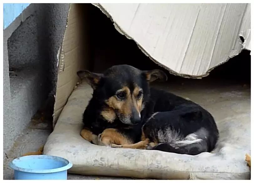 这次救援人再回来的时候发现布祖的软垫被人拿走了,这时布祖躲在纸箱里显得闷闷不乐,救援人给它东西吃的时候,它也不吃。