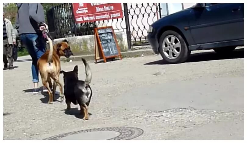 这时大部分宠主的看见有流浪狗接近自己的爱犬,会迫不及待地拉着自己的爱犬立即走开。当然布祖也是遇到了相同情况。