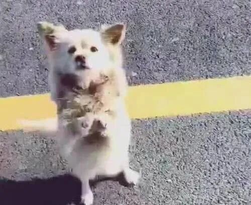 流浪狗不断的向路人拱手作揖,失败多次仍不放弃,原因让人心疼
