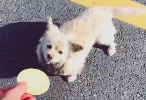 然后我就不自觉的多看了这只流浪狗一眼,之后就发现了这只狗狗的与众不同,它居然还这么有智商?流浪狗不断的冲着人家路人就开始拱手作揖,当然,它是有目的的,因为这个路人的手上有饼干!