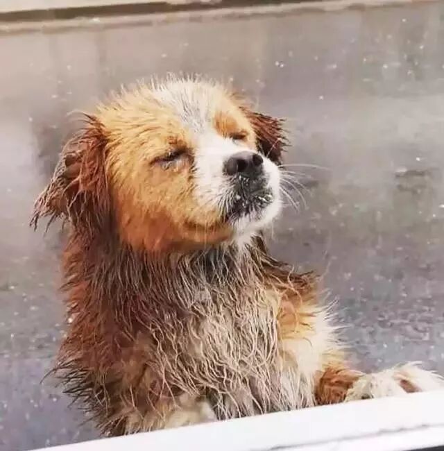 然而网友被流浪狗的举动感动得当场泪奔,觉得流浪狗非常懂事,它并没有为了躲雨,强行从车窗跳上来,而是趴在窗户上祈求完网友后,就直接半蹲着大雨中,等待网友的回应,可能正因为这只流浪狗被前主人狠心遗弃,所以才会让它更加懂事吧。