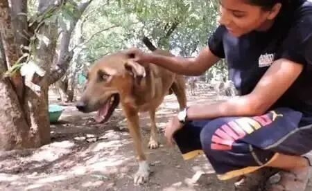 可怜的狗狗虽说少了一只前腿但还是十分的开朗,女孩每天都带着狗狗到处散步,狗狗走累了女孩的蹲在来轻轻的抚摸狗狗的头部,仿佛在安慰狗狗给狗狗加油。