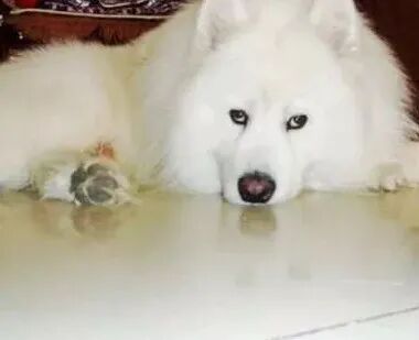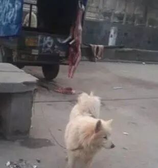 最后小两口在一家狗肉店门前找到了萨摩耶,当时它浑身是血,是被旁边的狗狗溅上的。狗狗很胆怯的趴在那里,最后小两口只能又花钱买回家了。但是萨摩耶心里一=已经有了恐惧,小两口怎么跟它互动它都不理睬。