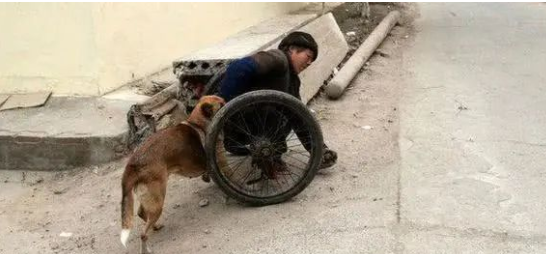 要是出去时候,老奶奶的下体被截肢了,出门很不方面。而这只土狗,就会在一旁用力的推着老奶奶坐的轮椅。
