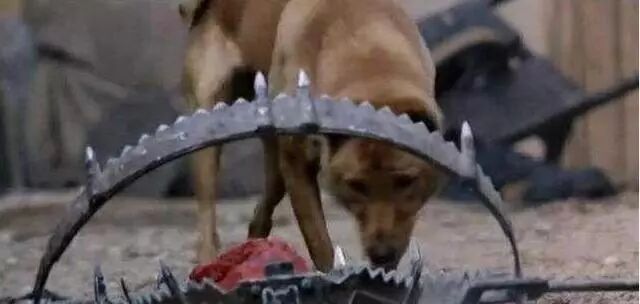 它慢慢的靠近铁夹子,眼睛紧紧的盯着铁夹子中的肉。就在狗狗用嘴把肉叼起来的瞬间,咔嚓一声,狗狗的脖子被铁夹子给紧紧的夹住,夹子上锋利的棱角让狗狗瞬间就断气了。虽然狗狗没有像人类一样的辨认感知能力,但是它们与人类一样同样也是这世界上的一条生命,也需要被尊重。一个无意的举动却让一个幼小的生命陨落。我们要关爱这个世界上那些弱小或是被人遗忘的生命,让这个世界被爱笼罩,让那些生命不再孤单。