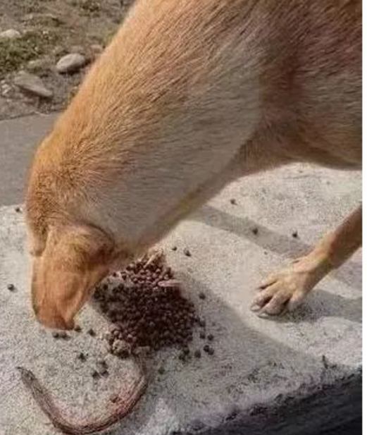 从它的眼神可以看出这是狗狗给主人专门准备的礼物。走近一看才知道这是狗粮,主人瞬间明白原来狗狗是在报恩,把自己最喜爱吃的食物拿给主人。