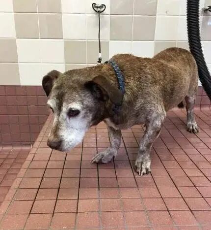 在国外就有一位好心人,在外面散步时发现了一只老狗狗,它嘴巴旁边的毛发已经全部变白了,应该年龄已经很大了,也不知道它流浪了多久。询问了附近的商家后,他们说这只狗狗已经在这块区域流浪了很多年了,也不清楚它的年龄。好心人发现狗狗并不抵触人类的接近,只是有点害怕,他便把狗狗带到了宠物医院里检查,打算收养它。