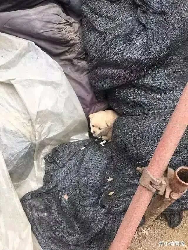有次,废品堆里露出一个可爱的小脑袋,是一只小奶狗,它当时正在一个黑色的纱布包围者废品的地方,小小的蜷缩着身体,让人觉得很可怜,两只耳朵也是耷拉着的,不知道它是怎么来到这里的。