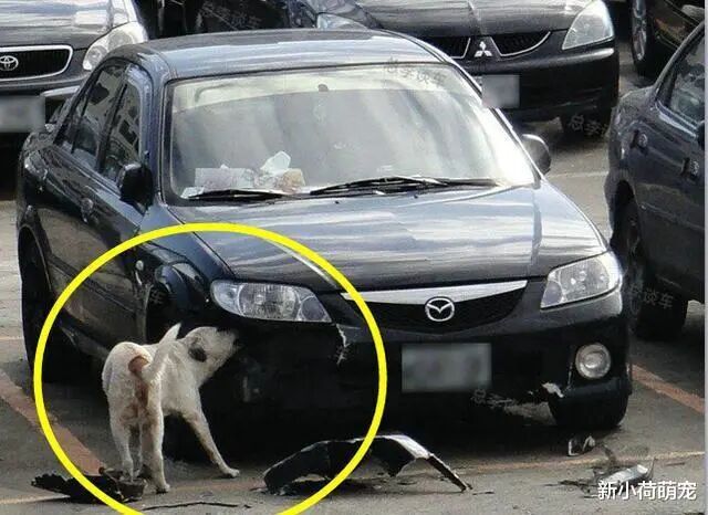 网友却瞪大了眼睛,因为这只狗狗居然开始拆车子!就好像是在说:我也是有脾气的,开启复仇模式!只见它对着车子前面的塑料就开始咬,然后撕扯,直到把它们扯下来,然后扔在一边,接着继续撕咬。