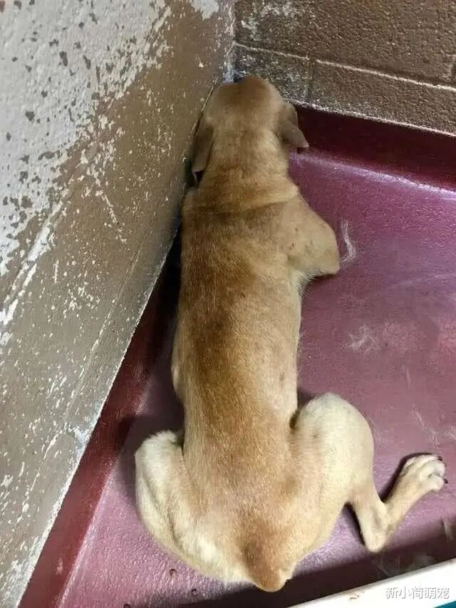 一直以来,这只狗狗无论是有同伴在身边,还是救助人员呼唤它,喊它吃饭,它都是自己一个默默地把脑袋埋在墙角,四肢扶着地,身体慢慢地压下去,想要紧紧贴着地面,尤其是两只后腿的姿势,让人心生难过。