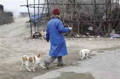不管酷暑还是寒冬,高俊玲每天都骑着电瓶车,载着大包小包的狗粮,沿着南四环拆迁地绕一圈,去喂养这些被拆迁遗留下来的流浪狗们...