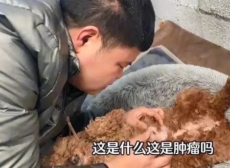 原来泰迪的肚子部位,有一个很大的肿块,大约有拳头般大小,估计也不是一天两天的事情了。大概是主人不是想泰迪花钱治疗,所以趁着它还能卖钱,就给了狗肉馆。