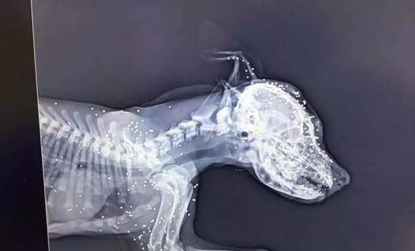 送到医院时,原本以为只是简单的头部和身上的外伤,结果医生在拍X光片时发现,狗狗身上和头部布满了钢珠。密密麻麻近几十个。在场的医生和发现人都开始流泪,心疼这个不吵不闹的乖狗狗,它该有多痛苦,浑身的伤痕,坚硬的钢珠,这些都刺痛了它喜欢人类的心,但是它依旧没有憎恨。也许只有狗狗自己知道,自己到底经历了什么,到底有多痛。
