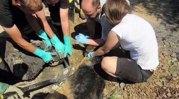 狗狗想都没想就冲上去吃腊肠,不过,刚吃了几口,狗狗就倒在了地上,等狗狗醒来,狗狗被浇筑在了水泥里,好心人过路看到就报了警,救援人员来到之后小心翼翼的把狗狗解救出来,好在狗狗没有太大的伤害。其实我们应该有点爱心,那么就不会有那多的流浪狗了。你觉得呢?