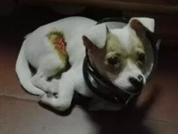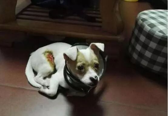 后来有位看不过去的女士带走了这只狗狗,将它送去治疗然后又收留了这只狗狗,这只狗狗虽然已经得到了救治但肚子上的伤口依然在告诉这大家它遭受了怎样残忍的对待。