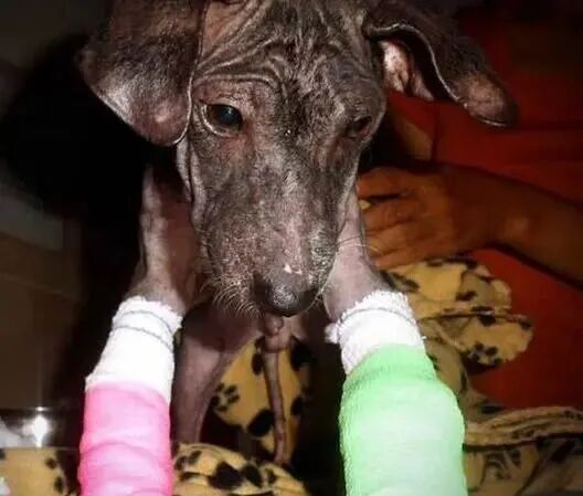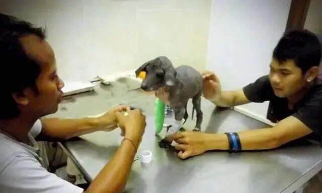 然而它是一条鲜活的生命,再怎么难以治疗也要尝试,于是为它驱虫、补钙、治疗皮肤病,为了治疗它畸形的前腿,还必须包上厚厚的石膏。工作人员们对它倾入了满满的爱,给了它活下去的极大信心。