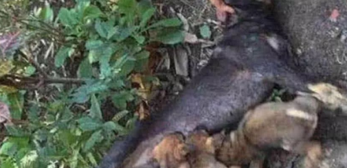 这只可怜的流浪母狗因为过于饥饿而被活活饿死直接过世了,但是它怀中的4只小狗却什么都没有察觉出来,依旧吵着要奶喝,可是这个时候狗妈妈的身体早已冰凉,即使是在生命的最后一刻,狗妈妈都没有离开自己的孩子,即使命不久矣,狗妈妈依然坚持着给自己的孩子喂奶,我们无法得知狗妈妈最后的感受和想法,我们能知道的就是这样的想法就是世界上最伟大的母爱。
