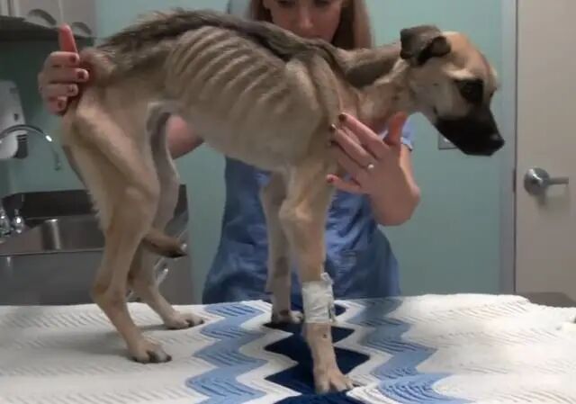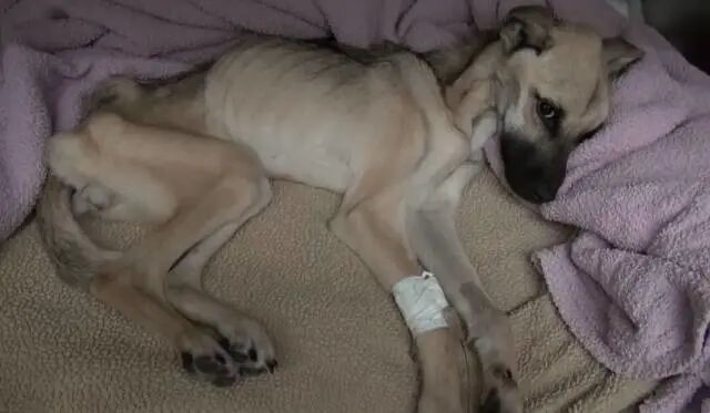 狗狗瘦到每根肋骨都清晰可见