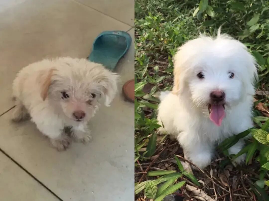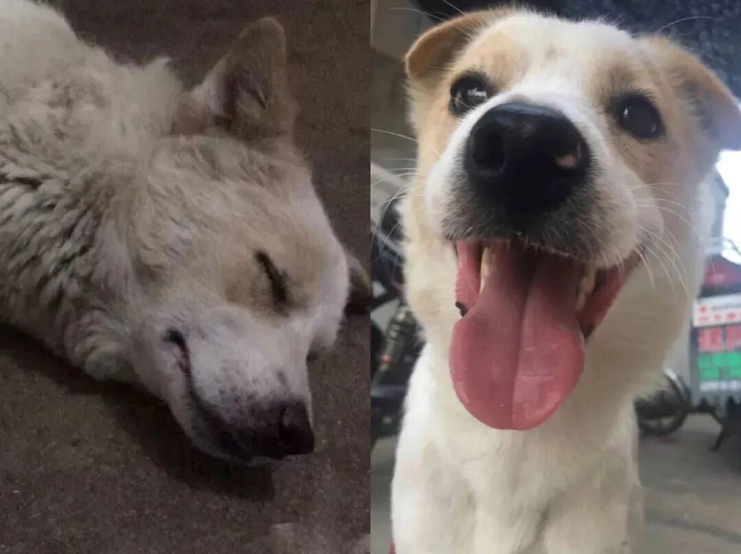 “两年前刚收养它的时分它瘦的皮包骨,把家里人都给愁坏了,后来使劲给它补养分才长胖了点。”