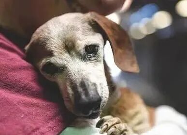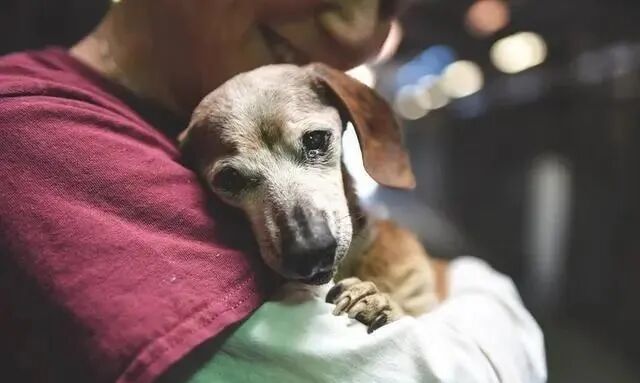 这只老狗今年18岁高龄了,曾经也是备受主人的呵护,可是由于太老,眼睛又白内障看不见了,可怜的狗狗被前主人遗弃了。