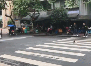 就在路人想要上前去把狗狗带到安全的地方时, 突然发现不远处来了一辆洒水车从这边经过,就算是司机看清了地上的流浪狗,不会撞上去,但这要是被洒到了一身的水,搞不好也是要着凉的。