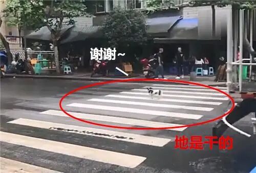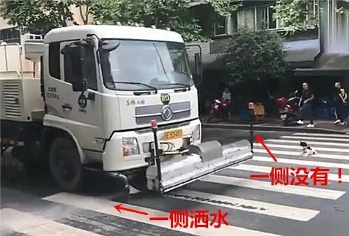原来洒水车的司机早已发现了这只流浪狗的存在,在经过流浪狗时,虽然狗狗并没有离开躲避,只是站了起来,但司机师傅竟然为了狗狗悄悄地关闭了那一侧的水阀!