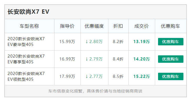 本站采集了长安欧尚X7 EV的真实成交价,长安欧尚X7