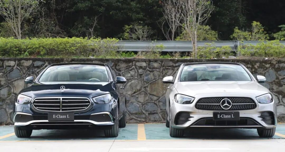 首先我们看一下前脸,前脸的话它是采用这种经典的立标,三叉星辉对吧,坐在主驾驶就可以直接看到我们,三叉星辉,指引你走向成功的道路啊,运动款的是这种啊运动大标的版本,再来看一下这个近期隔三采用这种,盾牌式的,这种近期隔三啊,盾牌在西方代表着权力,下边包围采用棍穿式前包围,可以看一下,整体前脸设计的话,显得比较沉稳一些,大灯跟这个,运动完美的他没有什么太大的区别