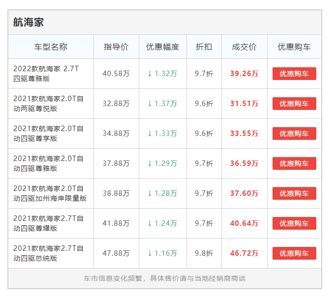 2021款航海家2.7T自动四驱尊耀版