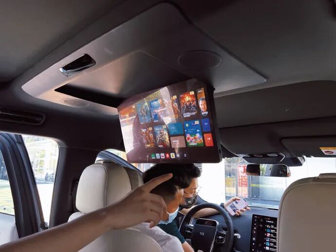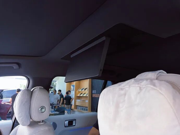 分段式天窗,大型SUV里做分段式天窗不多见,前面留一块天窗,后面横梁大主要是为了藏这个时灵时不灵用手势控制的小彩电,后面才是大面积的全景,挺好,这台车一切都是为了后排,根据理想一直强调以“家”为属性的宣传口号,这台车是喊了啥做到了啥,并不是那种空喊不干活的,实干型车属于;