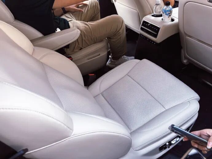 4.后排亮点配置:大尺寸的HUD替换了传统仪表,刚开始看不习惯,其实看了会儿,HUD的清晰度和面积其实很赞,我觉得比奥迪奔驰的要好,和新款宝马的差不多吧,6座都是电动可调巴适,地台纯平,而且第三排座椅调整的时候第二排也会自动调整,这个细节很赞;第二排还提供通风加热,头顶还有小平板客车彩电,我看了下距离,比新一代7系那个怼着脸的大屏要来的舒服,7系那个你只要体验过都觉得头疼,怼脸了都!不过我可能不太喜欢这种,因为我很容易晕车;
