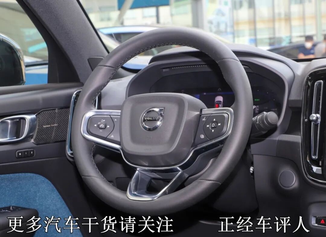 车内呢就更加的沃尔沃了,因为沃尔沃的设计就是把实用性和简约性融合在一起,所以说这个中控你看到,除了这一块9英寸的屏幕,几乎看不到什么按键,所以说很多功能,只能通过这个屏幕来操作,略粗的方向盘握感特别饱满,而且让人心里很踏实,最主要的是这个方向盘还有加热功能,全液晶仪表,与新能源车型搭配还是非常应景的,界面呢还是那么简洁容易查看