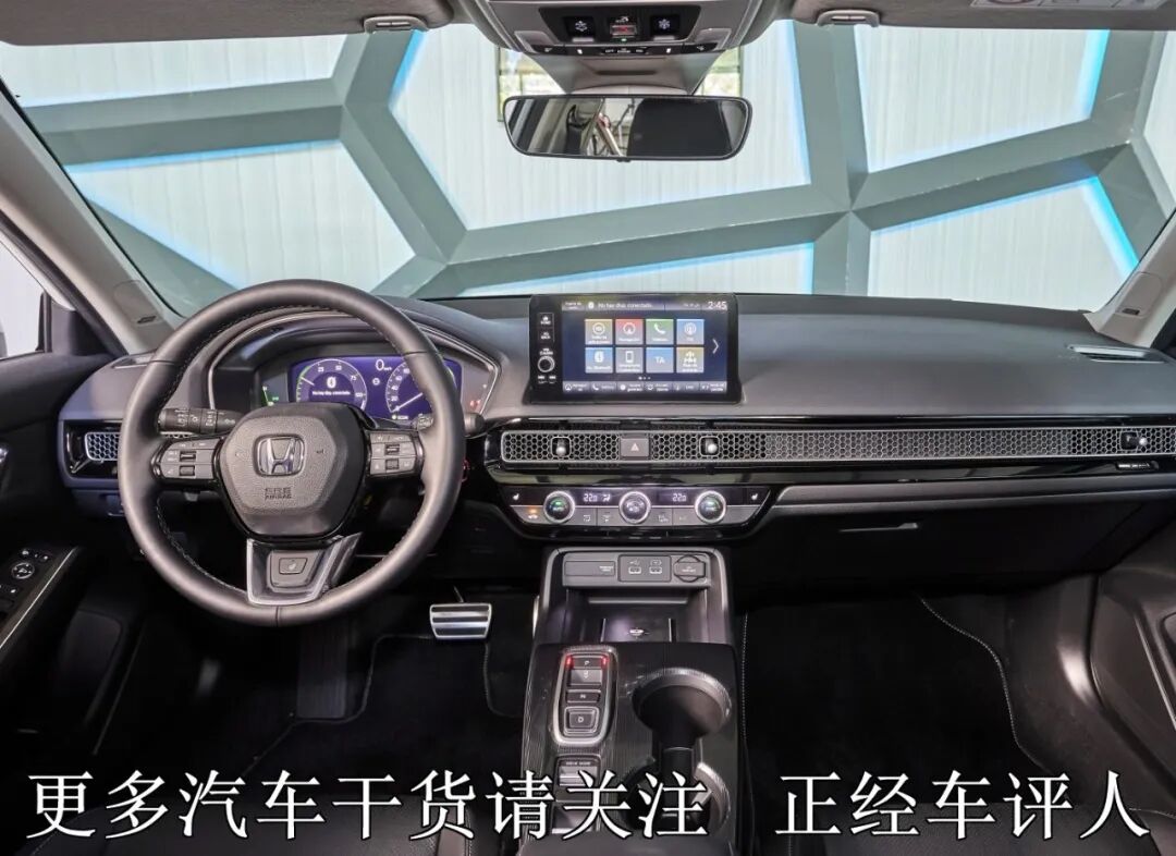 2023款本田思域的内饰,沿用了现款车型的设计风格,中控台直入10.2英寸全液晶仪表,以及9英寸悬浮式中控屏,中间保留了贯穿式,蜂窝空调出风口的设计,搭配底部的按键式换挡机构,整体风格精致简约