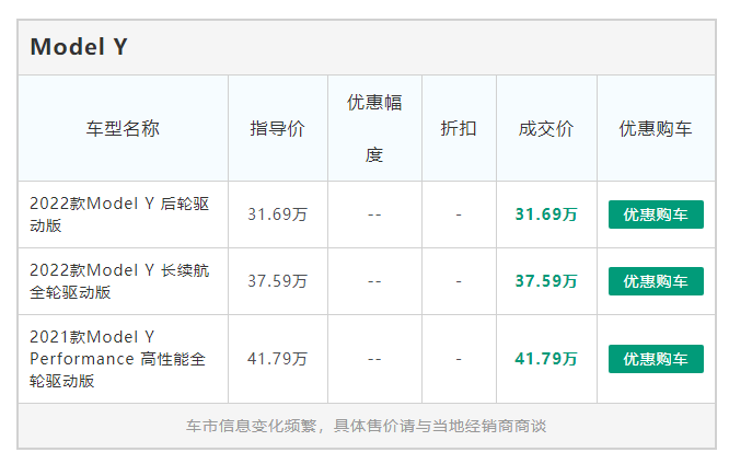 本站采集了特斯拉Model Y的真实成交价,Model