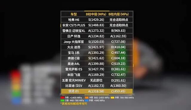 从这张图片里呢我们就可以看出,哈弗H6无论是A柱的中层还是A柱的内层,用的都是热成型钢,那强度呢都超过了1400了,没有谁能和哈弗H6相提并论?那除了吉普的大指挥官了,但是大指挥官的起售价呢,就将近了24万,比哈弗H6贵了10万左右