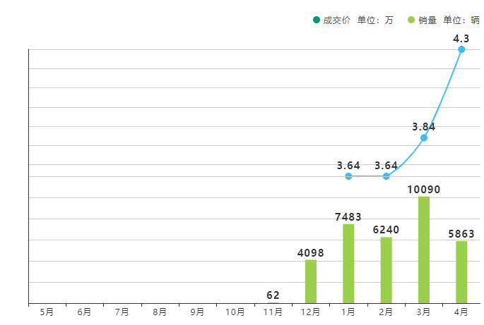从下图可知奇瑞新能源QQ冰淇淋的销量走势,奇瑞新能源QQ冰淇淋近一个月的销量为5863辆。虽说销量并不能代表一切,但销量高低的确已经成为了消费者选车的衡量标准之一,一款高销量的车说明适合大部分的消费者,也具备相对完善的售后服务,汽车配件自然流转率也会高一些。
