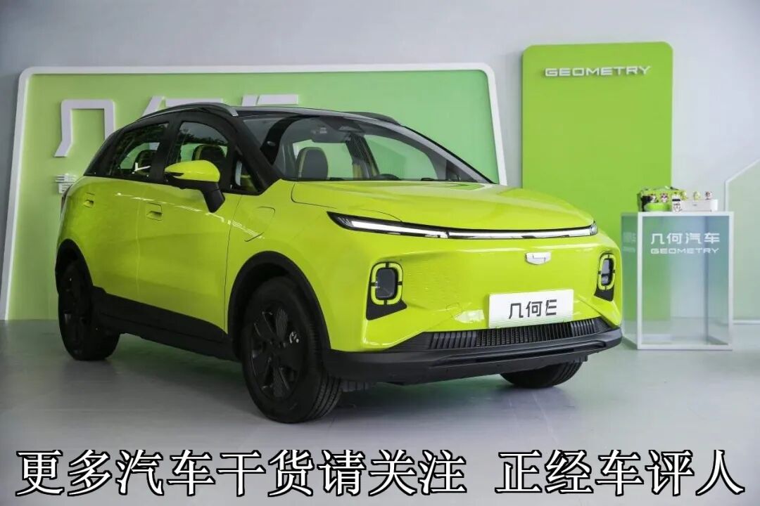 在CLTC工况下啊,几何E的续航里程是320公里,玲珑虎和霹雳虎都是401公里,几何E的优势啊,我觉得主要有两点,一是他萌萌哒的造型啊,这款车采用的分体式灯组设计,上方是一条狭长的换装式灯带,下方的大灯组则设计了一个亮色的圆矩形轮廓线啊,非常有辨识度