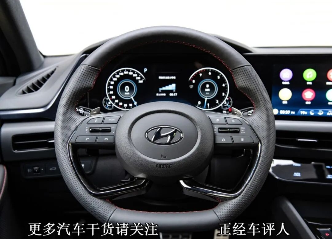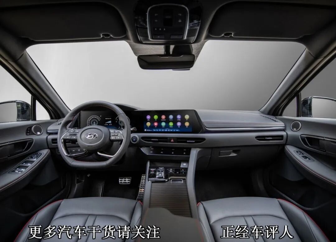 新款现代索纳塔的内饰,采用环抱式布局,中控台植入了由12.3英寸全液晶仪表和12.3英寸中控屏组成的双联屏,支持CAR